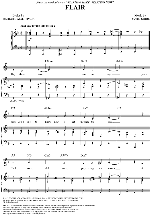 Digital Sheet Music for Flair by David Shire, Richard Maltby Jr. scored for Piano/Vocal; id:257265