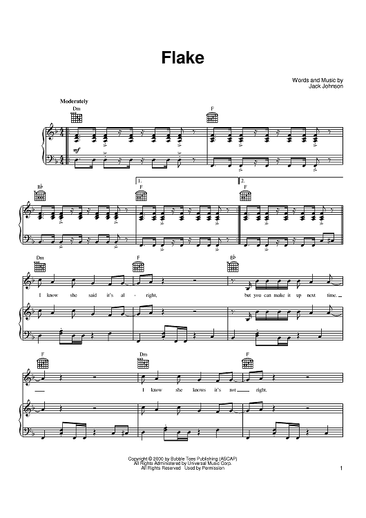 Digital Sheet Music for Flake by Jack Johnson scored for Piano/Vocal/Chords; id:389809