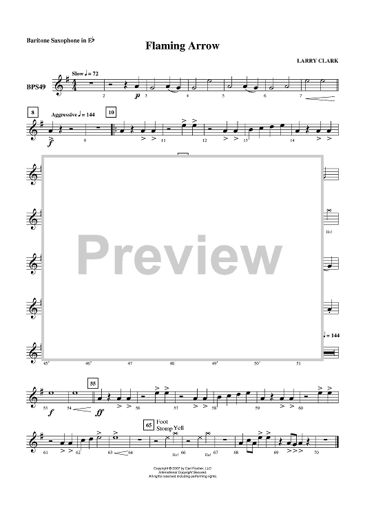 Digital Sheet Music for Flaming Arrow - Baritone Sax by Larry Clark scored for Concert Band; id:407096