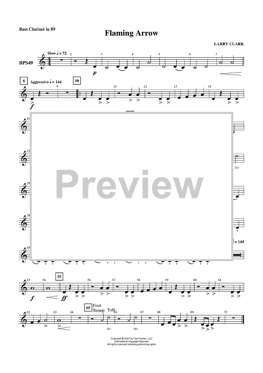 Digital Sheet Music for Flaming Arrow - Bass Clarinet in B-flat by Larry Clark scored for Concert Band; id:407093