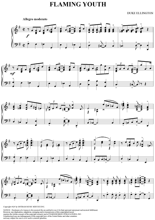 Digital Sheet Music for Flaming Youth by Duke Ellington scored for Piano Solo; id:116340