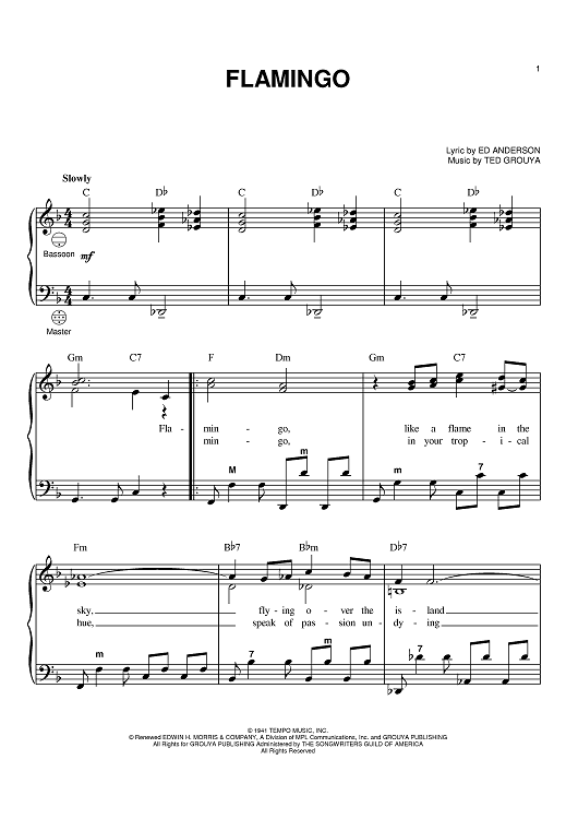Digital Sheet Music for Flamingo by Duke Ellington, Ted Grouya, Ed Anderson, Earl Bostic scored for Easy Piano; id:385724