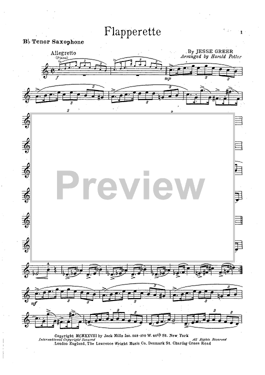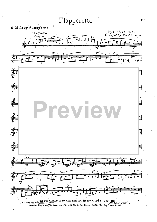 "Flapperette - Saxophone" Sheet Music by Jesse Greer