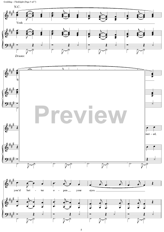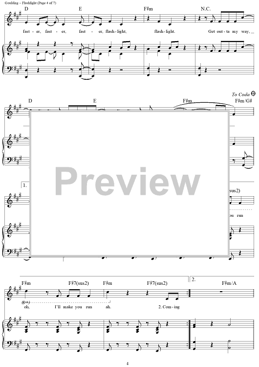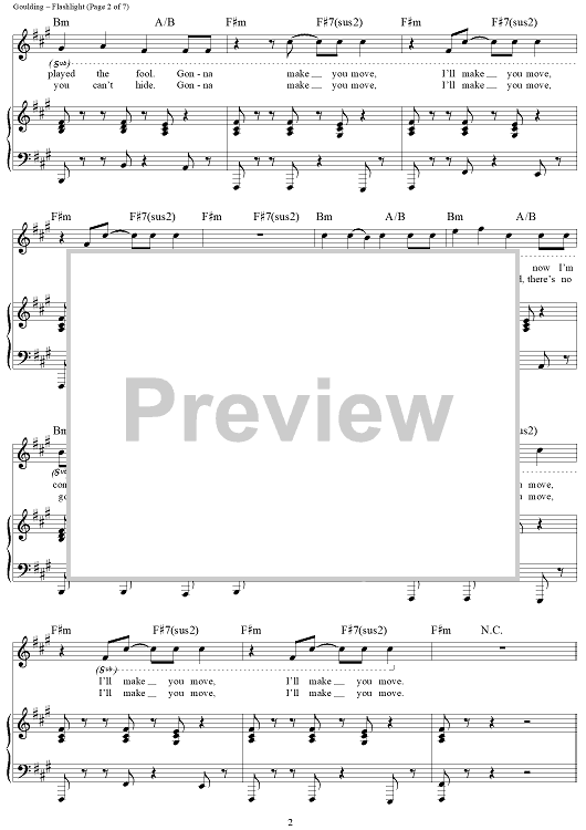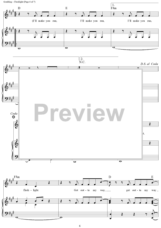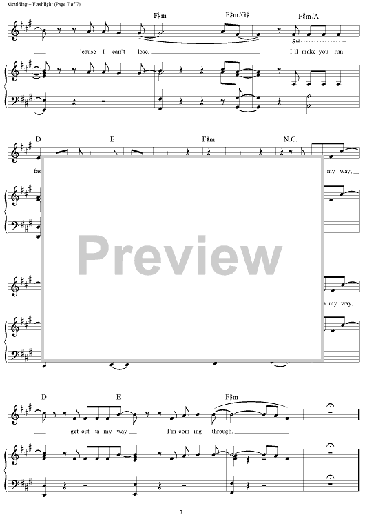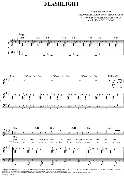 Digital Sheet Music for Flashlight by George Astasio, Jason Pebworth, Ellie Goulding, Jonathan Shave, Daniel Stein scored for Piano/Vocal/Chords; id:443744