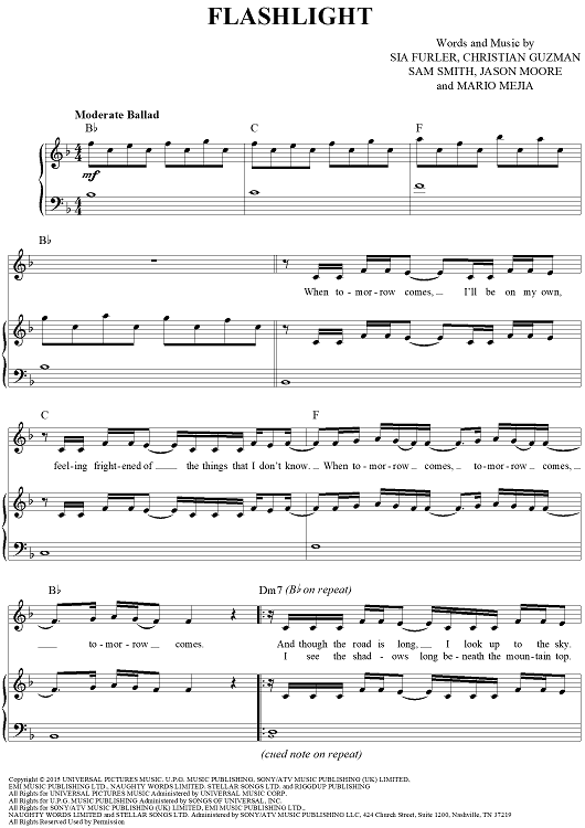 Digital Sheet Music for Flashlight by Sia Furler, Jessie J, Sam Smith, Christian Guzman, Jason Moore, Mario Mejia scored for Piano/Vocal/Chords; id:451802