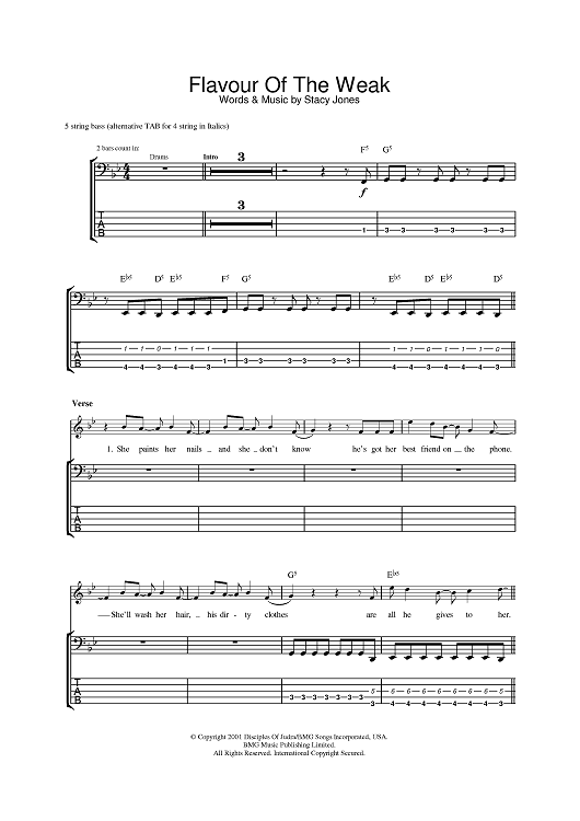 Digital Sheet Music for Flavor Of The Weak by Stacy Jones scored for Bass Tab; id:383894