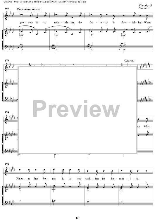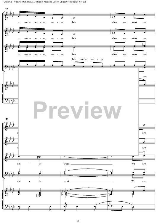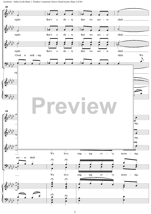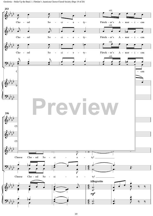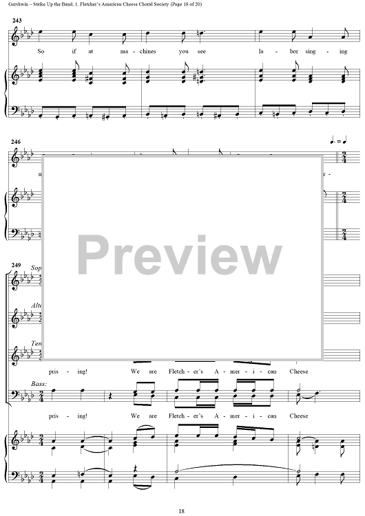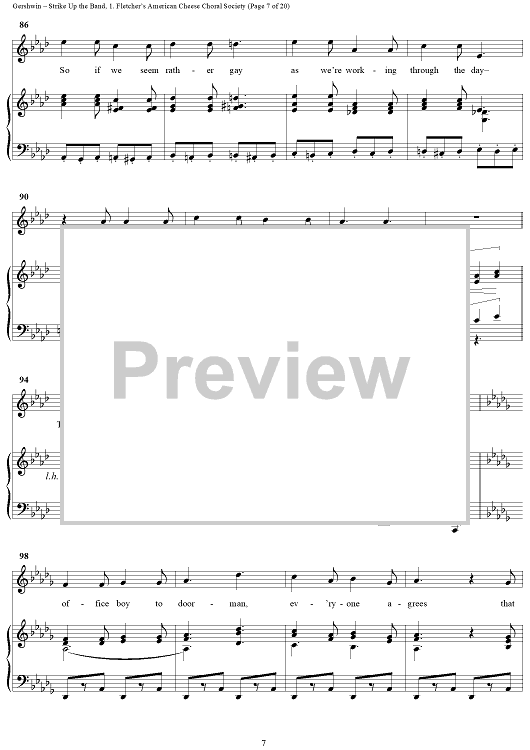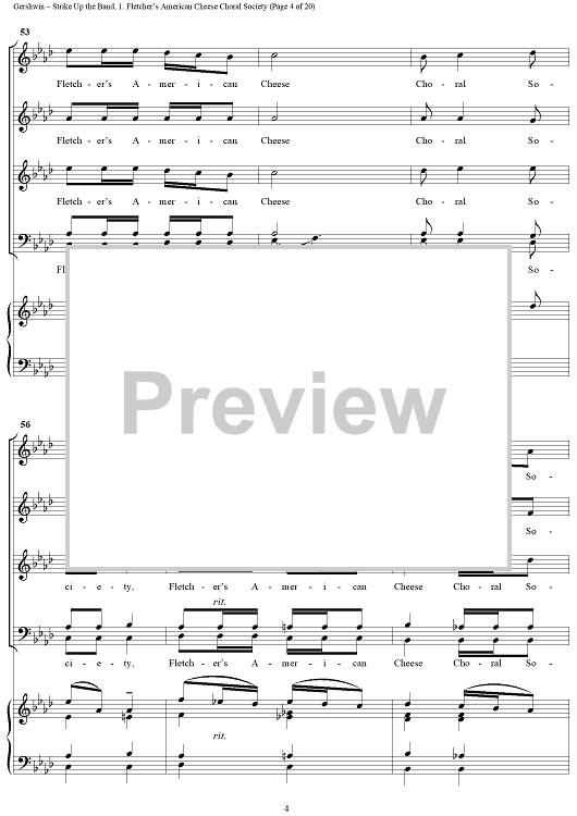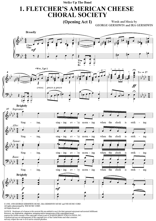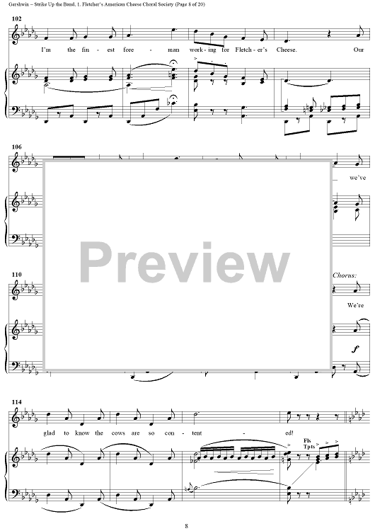 Digital Sheet Music for Fletcher's American Cheese Choral Society by George Gershwin, Ira Gershwin scored for Piano/Vocal/Chords; id:201362
