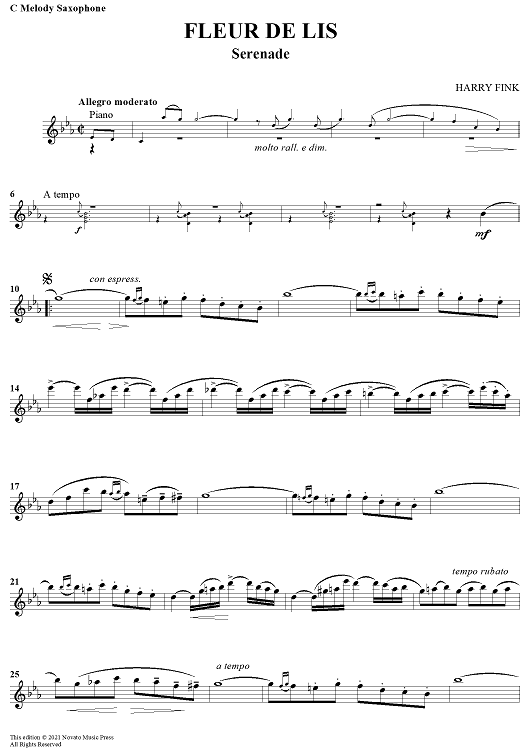 "Fleur de Lis - Serenade - C Melody Saxophone" Sheet Music by Harry Fink