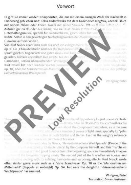 The only work still known today by Noack, 'Heinzelmännchens Wachtparade' [Parade of the Brownies] Op. 5 was called a 'character piece' by the composer himself, and this 'marche en miniature' conveys wit and good humour from the beginning; you can immediately imagine a picture of the brownies tripping along! The second part of the trio offers an ironical and very effective ending with its enticing harmonies and surprising effects.