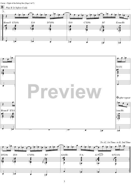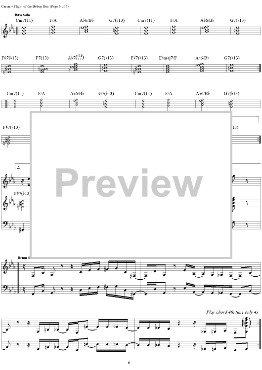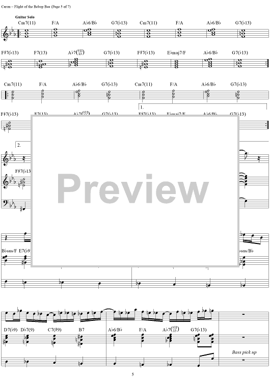 Digital Sheet Music for Flight of the Bebop Bee by Alain Caron scored for Jazz Combo; id:273293
