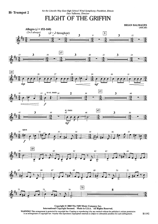 "Flight of the Griffin - Bb Trumpet 2" Sheet Music by Brian Balmages