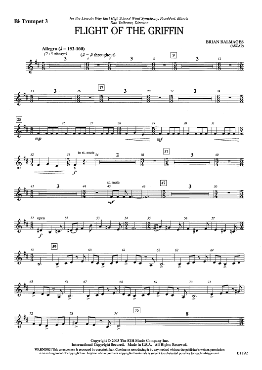 "Flight of the Griffin - Bb Trumpet 3" Sheet Music by Brian Balmages