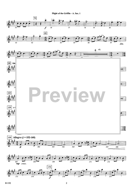 Digital Sheet Music for Flight of the Griffin - Eb Alto Sax 1 by Brian Balmages scored for Concert Band; id:443122