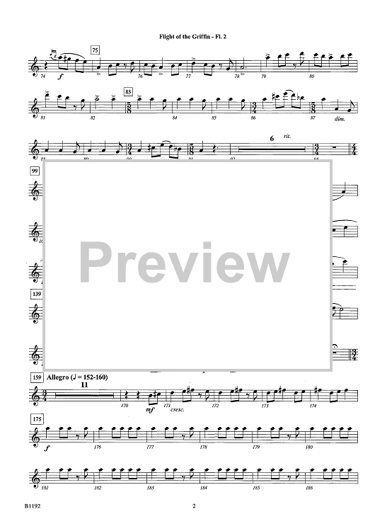 Digital Sheet Music for Flight of the Griffin - Flute 2 by Brian Balmages scored for Concert Band; id:443115