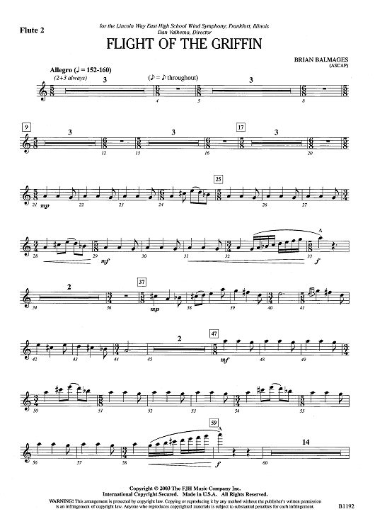 "Flight of the Griffin - Flute 2" Sheet Music by Brian Balmages