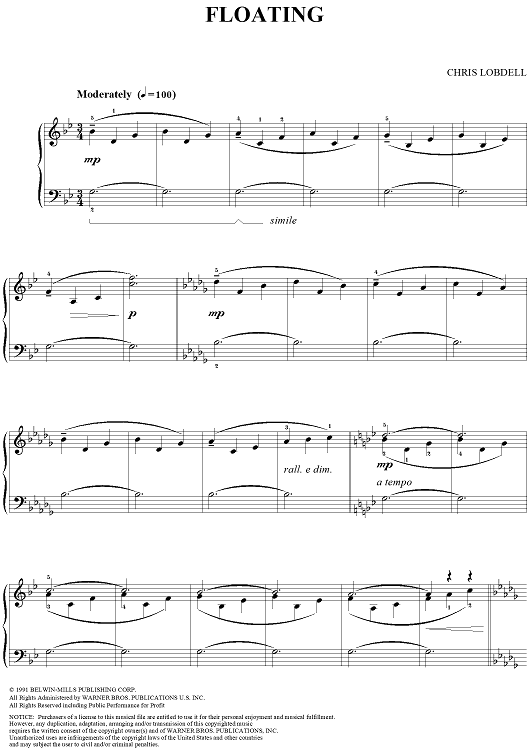 Digital Sheet Music for Floating by Chris Lobdell scored for Piano Solo; id:251075
