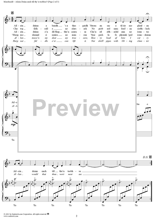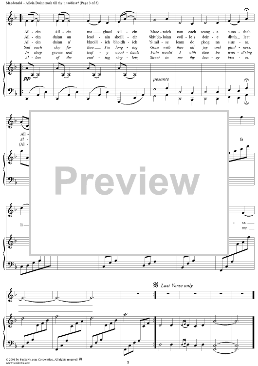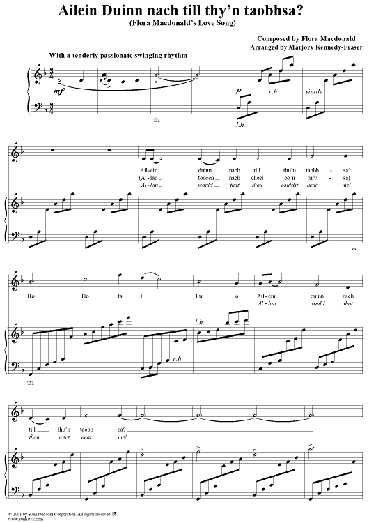 Digital Sheet Music for Flora Macdonald's Love Song, Ailein Duinn nach till thy 'n taobh-sa? by Flora Macdonald, Marjory Kennedy-Fraser scored for Piano/Vocal; id:260030
