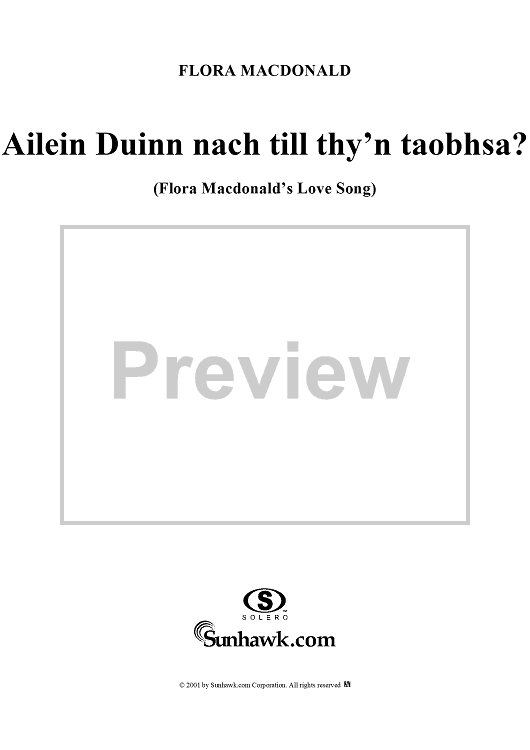 "Flora Macdonald's Love Song, Ailein Duinn nach till thy 'n taobh-sa?" Sheet Music by Flora Macdonald