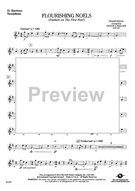 Digital Sheet Music for Flourishing Noels - Eb Baritone Sax by Traditional, Travis J. Weller scored for Concert Band; id:440451