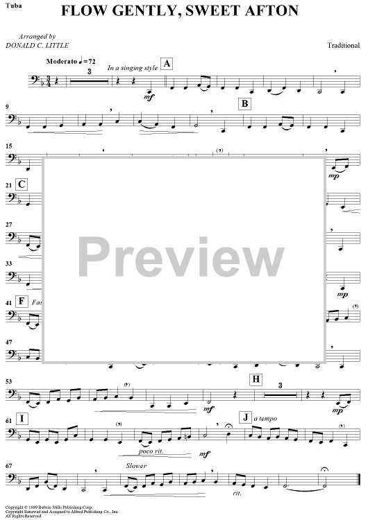 Digital Sheet Music for Flow Gently, Sweet Afton by Traditional, Donald C. Little scored for Tuba/Piano; id:438956