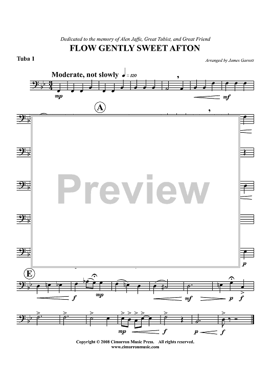 "Flow Gently Sweet Afton - Tuba 1" Sheet Music by Traditional