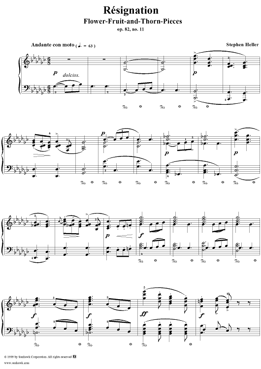 Digital Sheet Music for Flower-Fruit-and-Thorn-Pieces (Blumen-Frucht-und-Dornstücke), op. 82 - No. 11. Résignation by , Stephen Heller scored for Piano Solo; id:267081