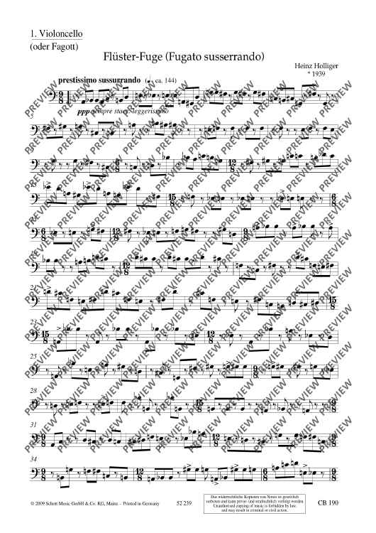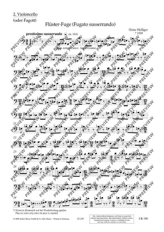 Digital Sheet Music for Flüsterfuge und Zirkelkanon - Score and Parts by Heinz Holliger scored for 4 Cellos (4 Bassoons); id:477202