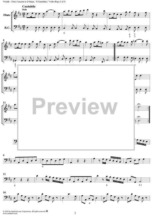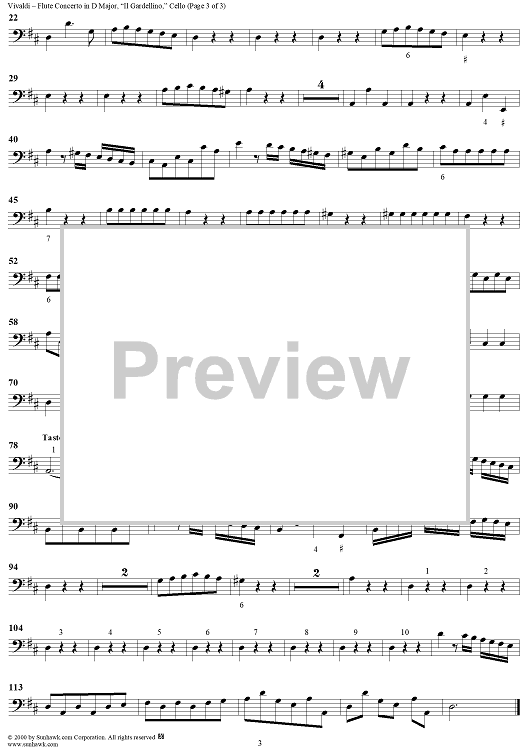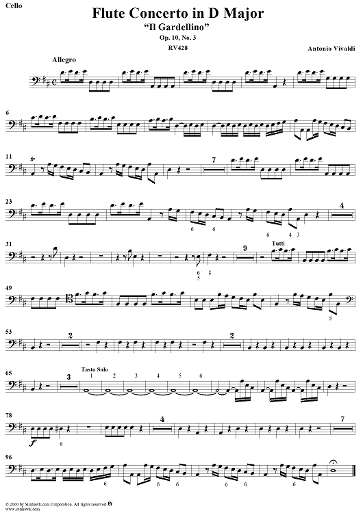 Digital Sheet Music for Flute Concerto in D Major ("Il Gardellino"), op. 10, no. 3 - Cello by Antonio Vivaldi scored for Flute/Strings/Continuo; id:235545