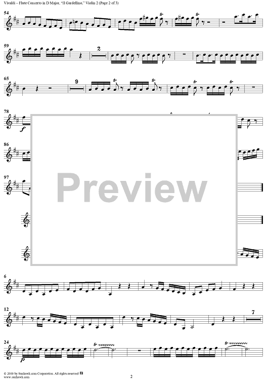"Flute Concerto in D Major ("Il Gardellino"), op. 10, no. 3 - Violin 2" Sheet Music by Antonio Vivaldi