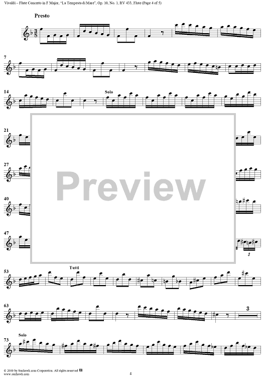 "Flute Concerto in F Major, Op. 10, No. 1 ("La Tempesta di Mare") - Flute" Sheet Music by Antonio Vivaldi