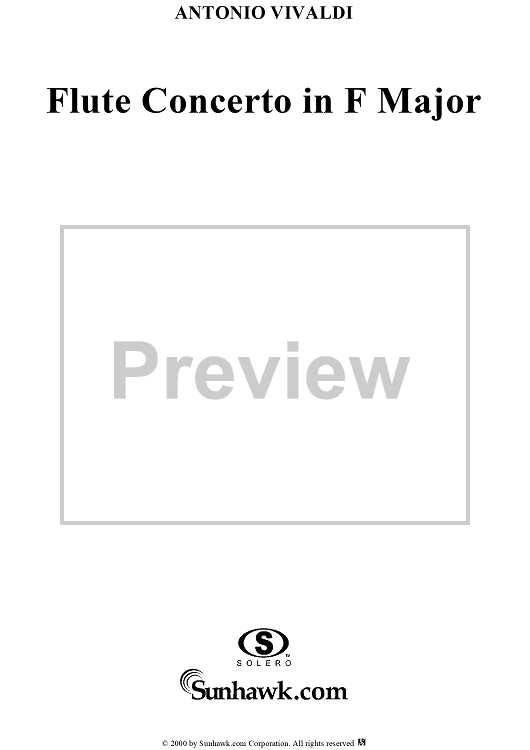 Digital Sheet Music for Flute Concerto in F Major, Op. 10, No. 5 - Violin 1 by Antonio Vivaldi scored for Flute, String Quartet or String Orchestra, Continuo; id:225160