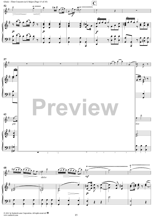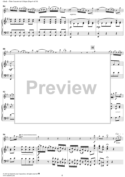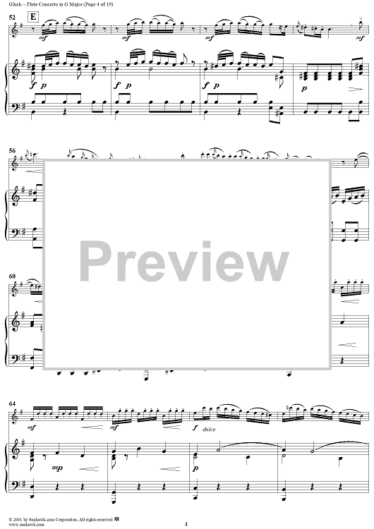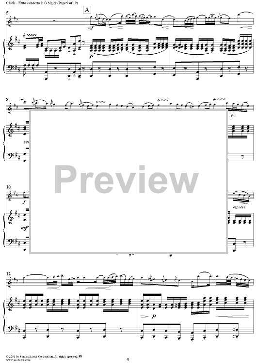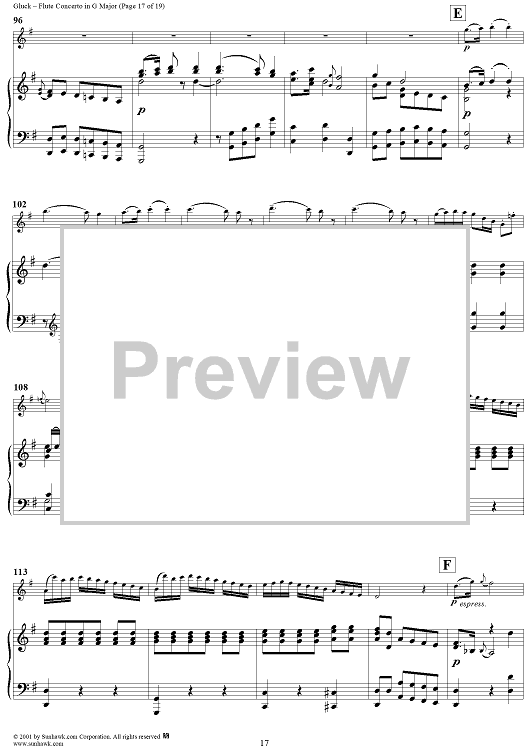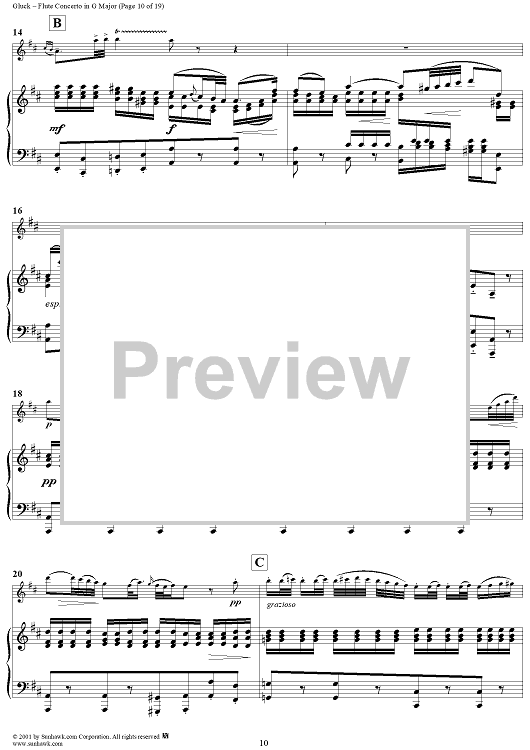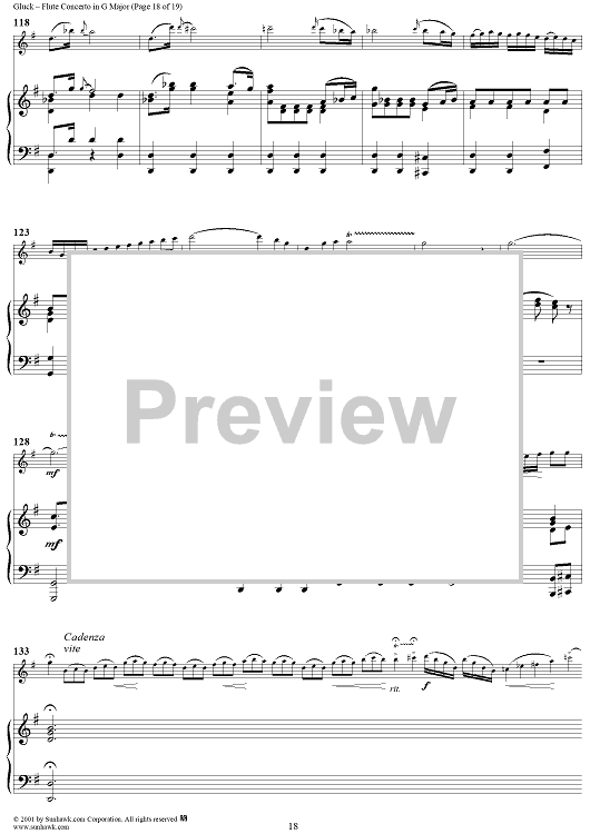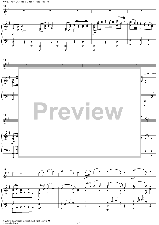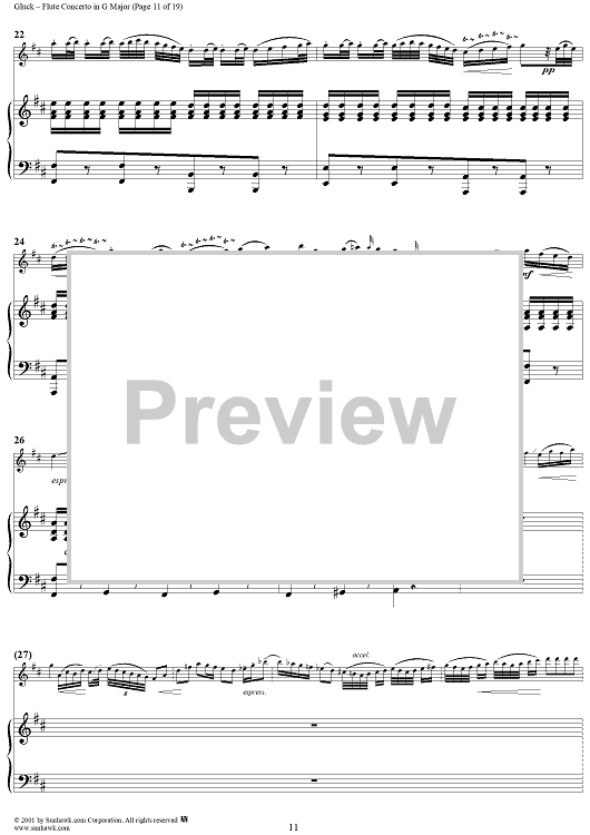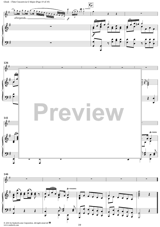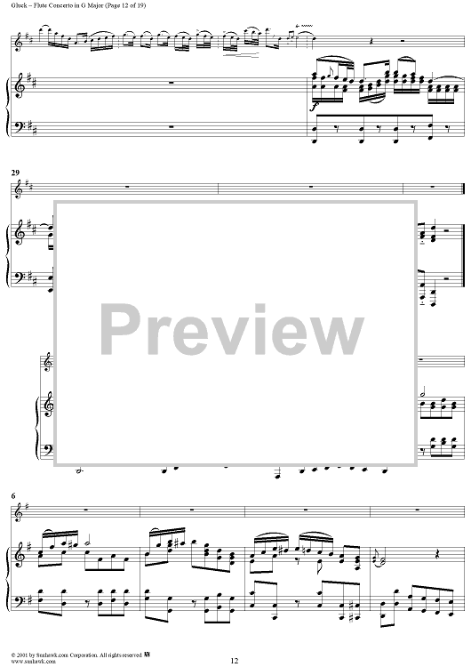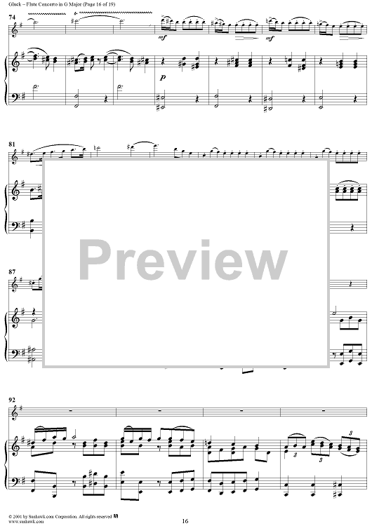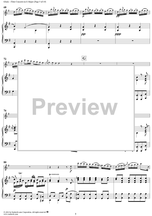 Digital Sheet Music for Flute Concerto in G Major - Piano Score by Christoph Willibald Glück scored for Flute/Piano; id:268409