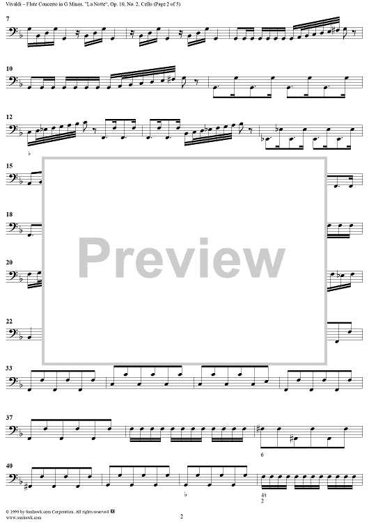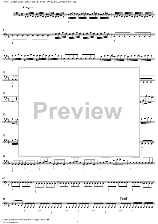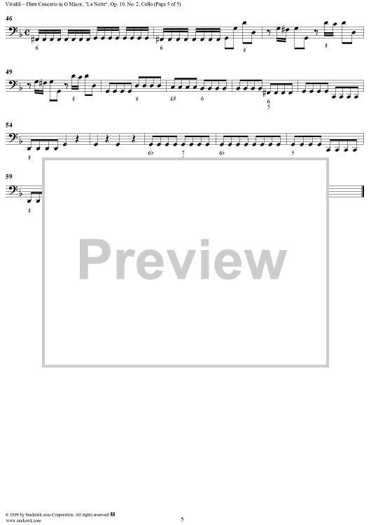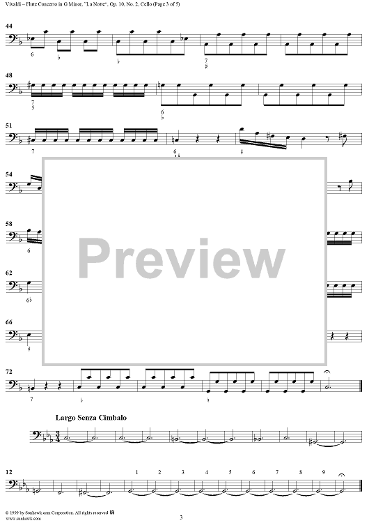 Digital Sheet Music for Flute Concerto in G Minor ("La Notte") - Op. 10, No. 2 - RV 439 - Cello by Antonio Vivaldi scored for Flute/Strings/Continuo; id:265047