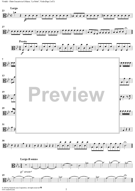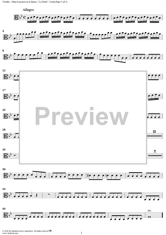 Digital Sheet Music for Flute Concerto in G Minor ("La Notte") - Op. 10, No. 2 - RV 439 - Viola by Antonio Vivaldi scored for Flute/Strings/Continuo; id:265049