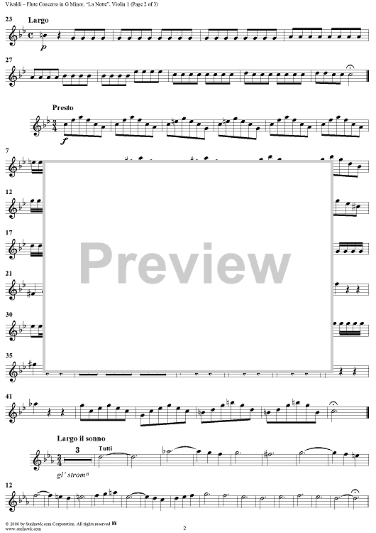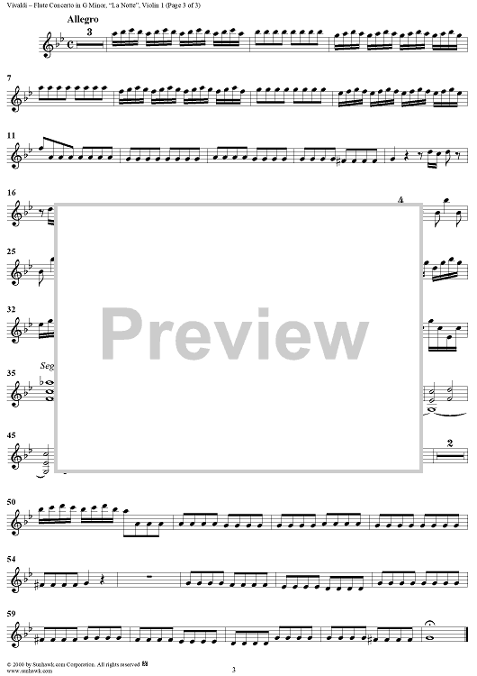 Digital Sheet Music for Flute Concerto in G Minor ("La Notte") - Op. 10, No. 2 - RV 439 - Violin 1 by Antonio Vivaldi scored for Flute/Strings/Continuo; id:265048