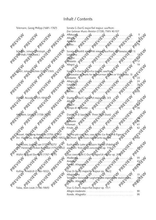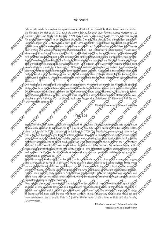 From the almost inexhaustible pool of flute duets, the editors Elisabeth Weinzierl and Edmund Wächter discovered lesser-known treasures from four centuries for this collection in order to make them (re)accessible to the interested flute world. As authentic sources as possible served as models for the compositions: autographs, early copies or first printings that made it possible to approximate the original text.