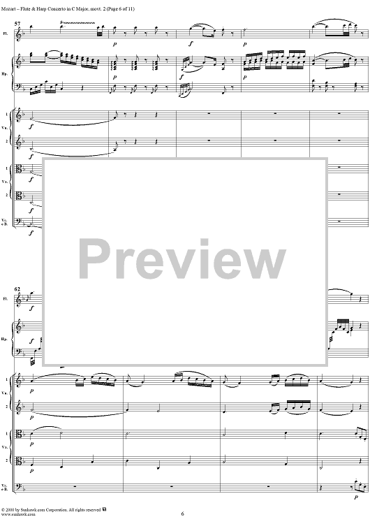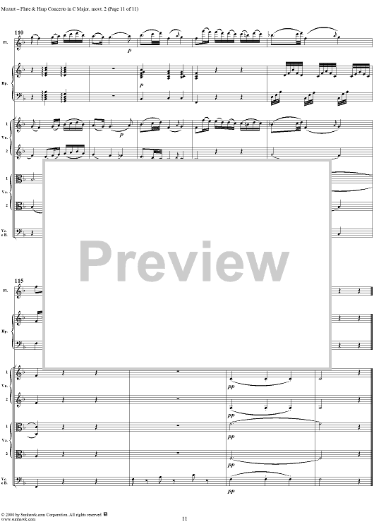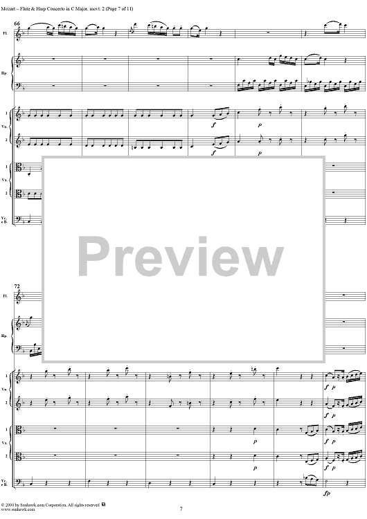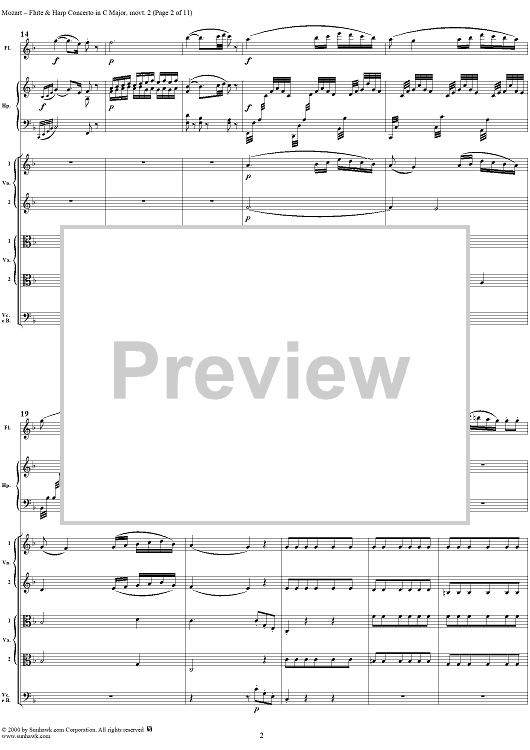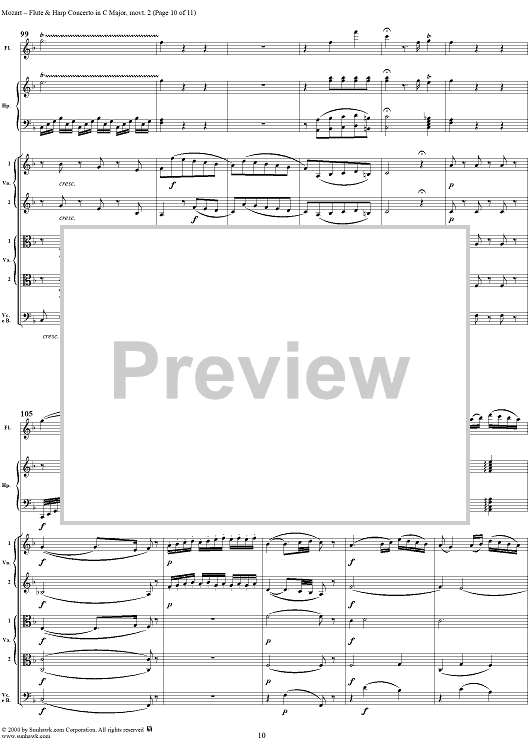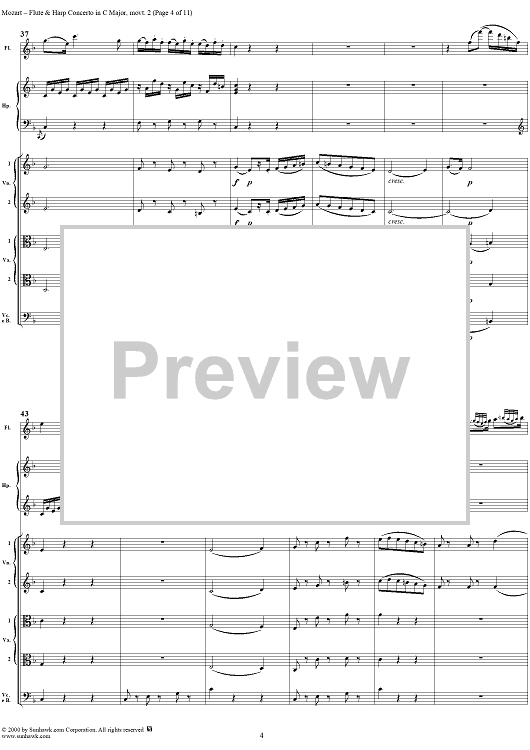 Digital Sheet Music for Flute & Harp Concerto in C Major, Movement 2 K297c (K299) - Full Score by Wolfgang Amadeus Mozart scored for Flute/Harp and Orchestra; id:253057