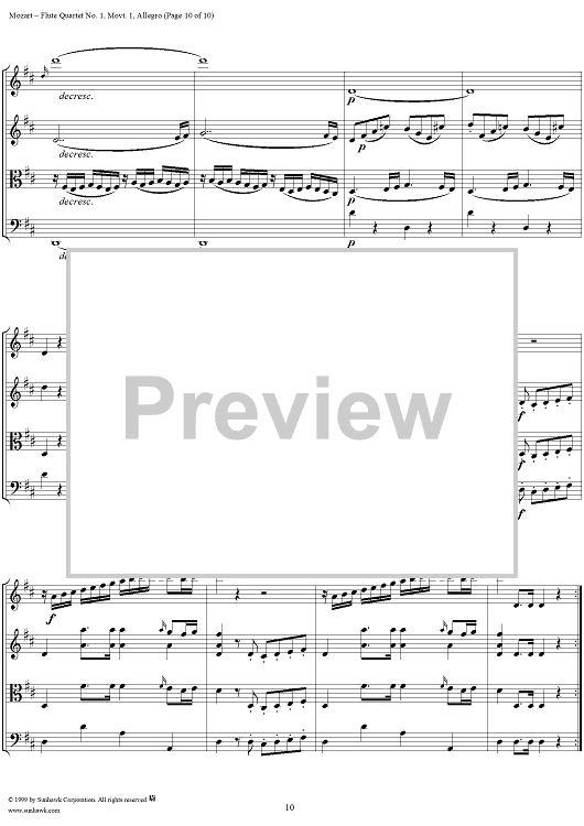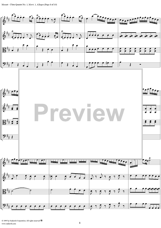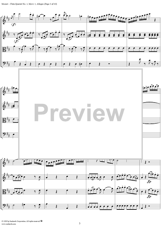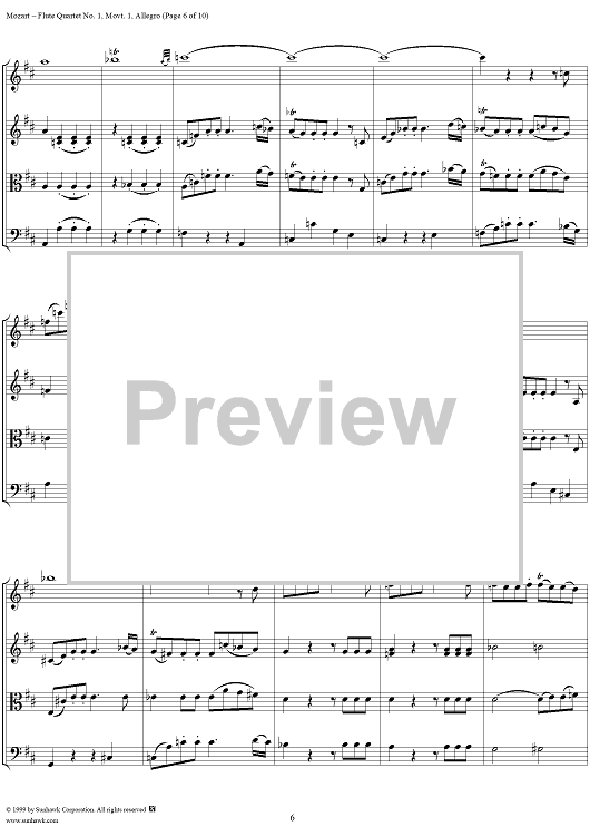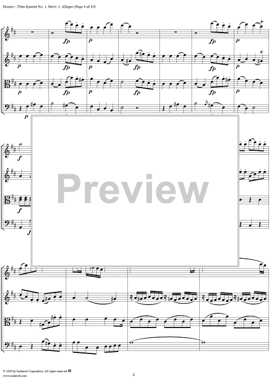 Digital Sheet Music for Flute Quartet No. 1, Movement 1 - Score by Wolfgang Amadeus Mozart scored for Flute/String Trio; id:252482