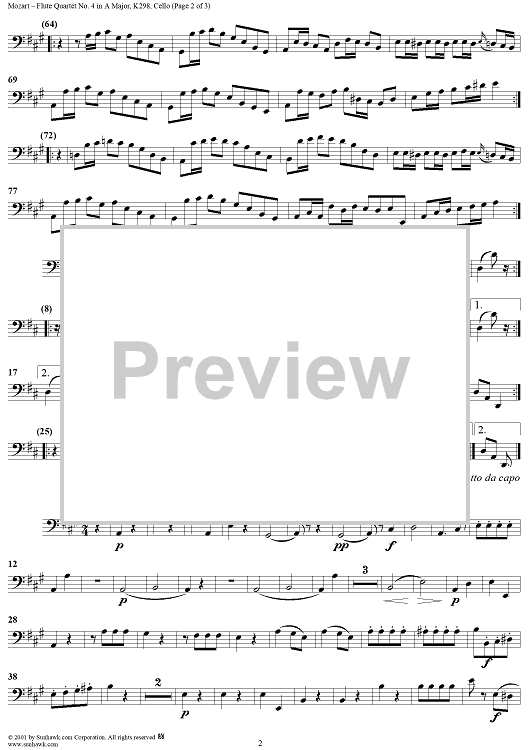 "Flute Quartet No. 4 - Cello" Sheet Music by Wolfgang Amadeus Mozart