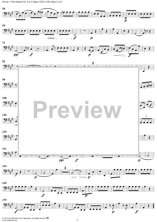 Digital Sheet Music for Flute Quartet No. 4 - Cello by Wolfgang Amadeus Mozart scored for Flute/String Trio; id:252657