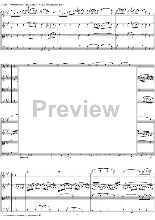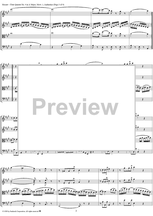 Digital Sheet Music for Flute Quartet No. 4, Movement 1 - Score by Wolfgang Amadeus Mozart scored for Flute/String Trio; id:108869