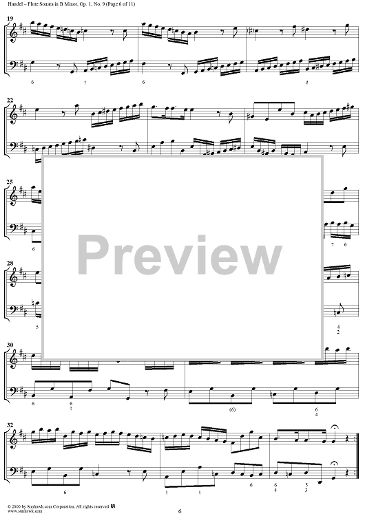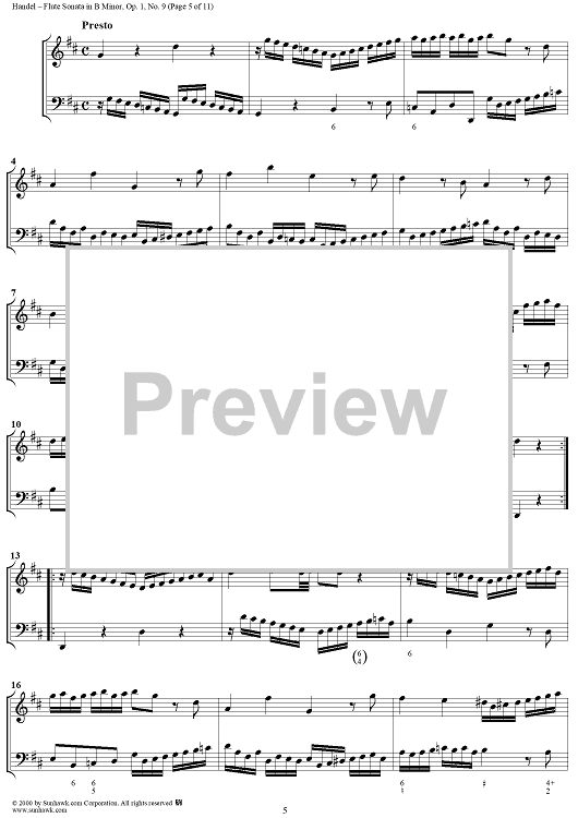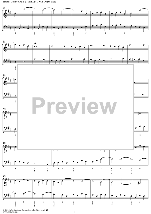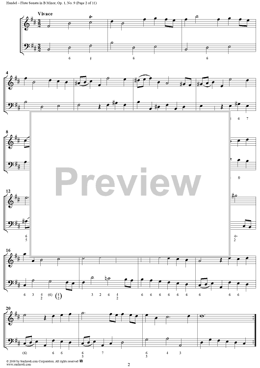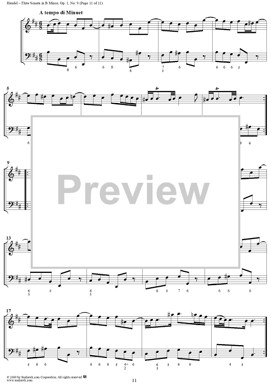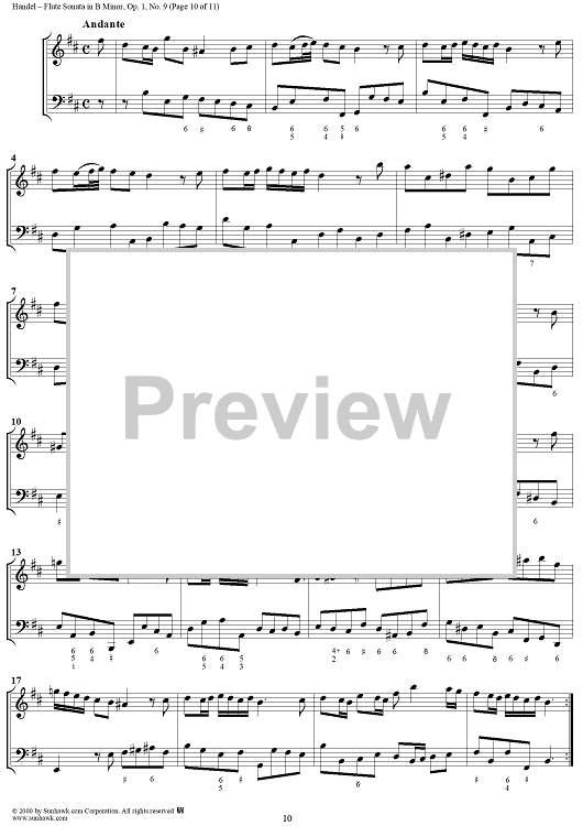 Digital Sheet Music for Flute Sonata in B minor, HWV367b by George Frideric Handel scored for Flute/Continuo; id:235800