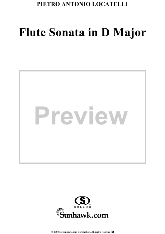 "Flute Sonata in D Major, Op. 2, No. 5 - Piano Score" Sheet Music by Pietro Antonio Locatelli