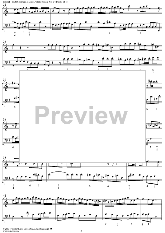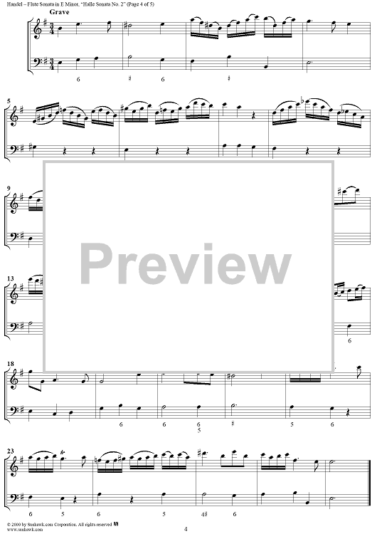 Digital Sheet Music for Flute Sonata in E minor, HWV 375 ("Halle Sonata no. 2") by George Frideric Handel scored for Flute/Continuo; id:183955