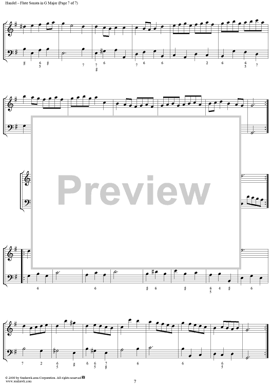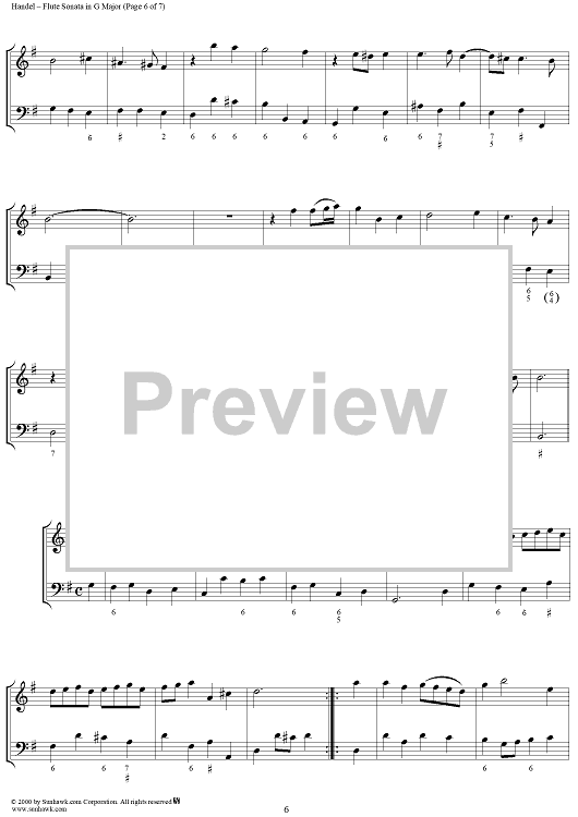 Digital Sheet Music for Flute Sonata in G major, HWV 363b by George Frideric Handel scored for Flute/Continuo; id:225179
