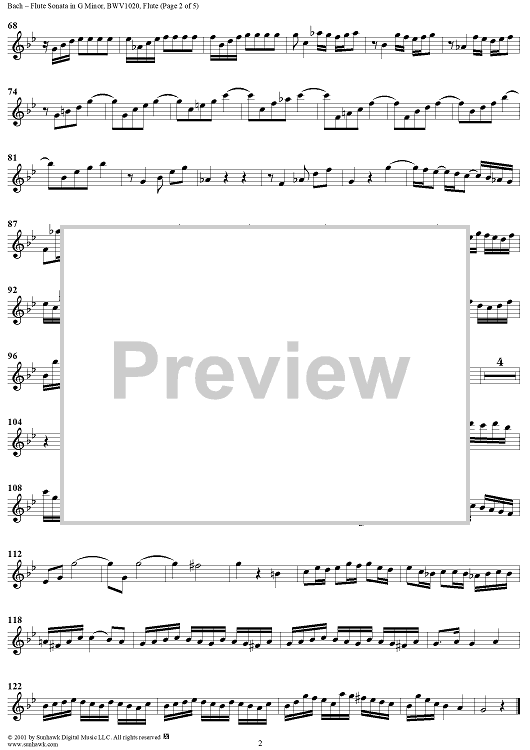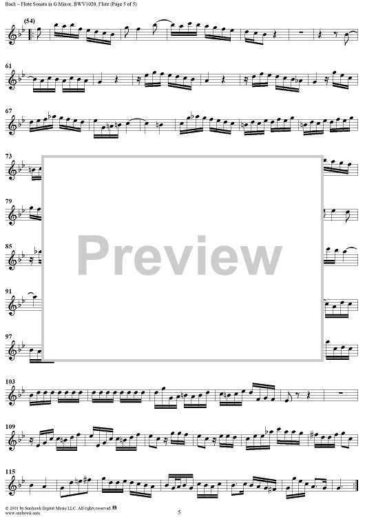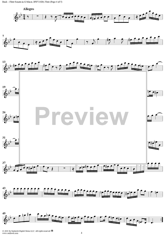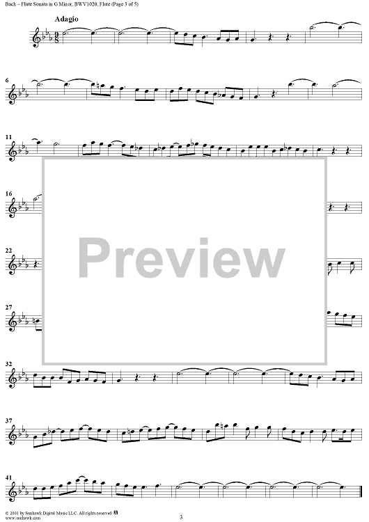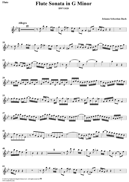 Digital Sheet Music for Flute Sonata in G Minor BWV1020 - Flute by Johann Sebastian Bach scored for Flute/Piano; id:276449
