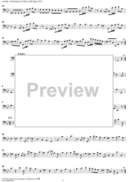 Digital Sheet Music for Flute Sonata in G Minor, Op. 2, No. 6 - Cello by Pietro Antonio Locatelli scored for Flute/Piano/Cello; id:250831