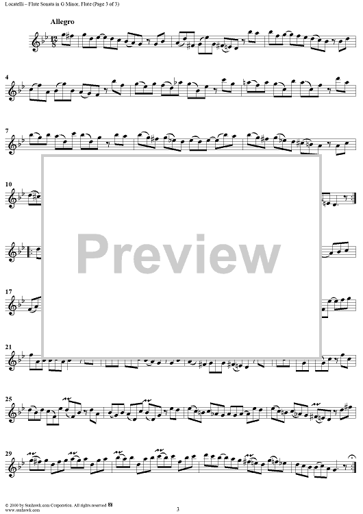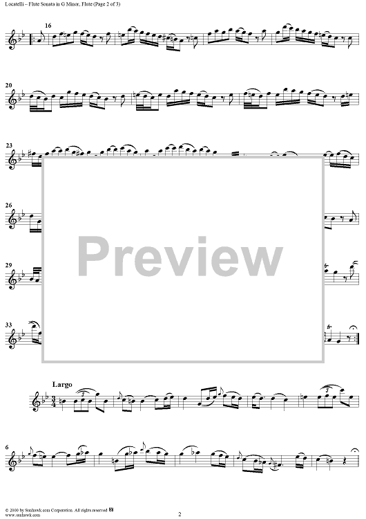 Digital Sheet Music for Flute Sonata in G Minor, Op. 2, No. 6 - Flute by Pietro Antonio Locatelli scored for Flute/Piano/Cello; id:250829