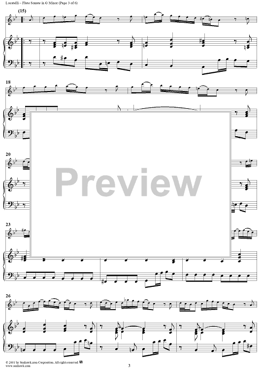 Digital Sheet Music for Flute Sonata in G Minor, Op. 2, No. 6 - Piano Score by Pietro Antonio Locatelli scored for Flute/Piano/Cello; id:250830