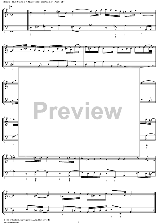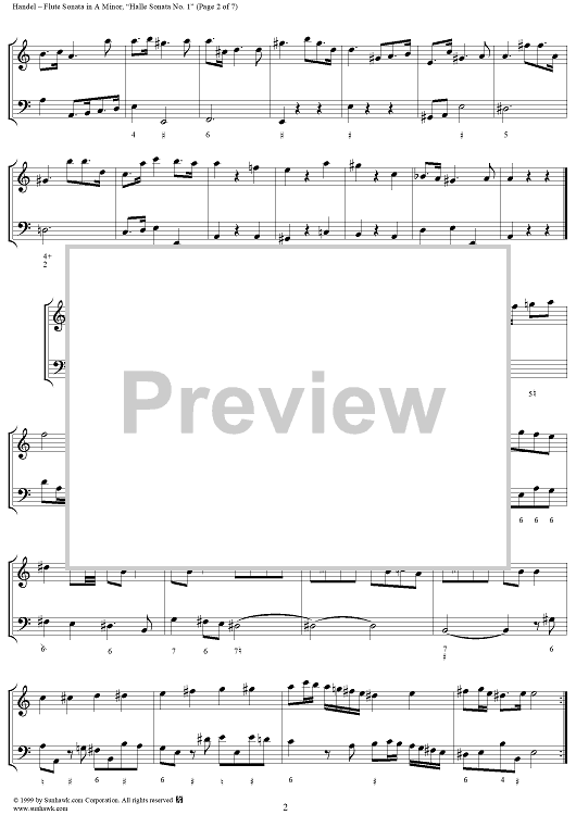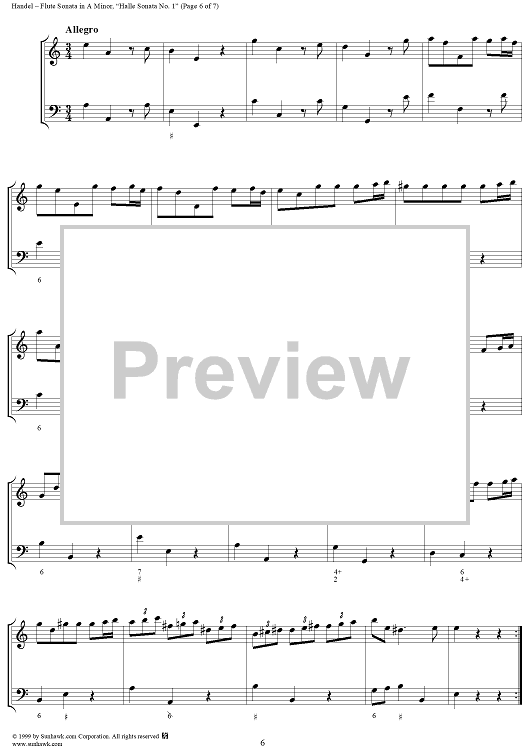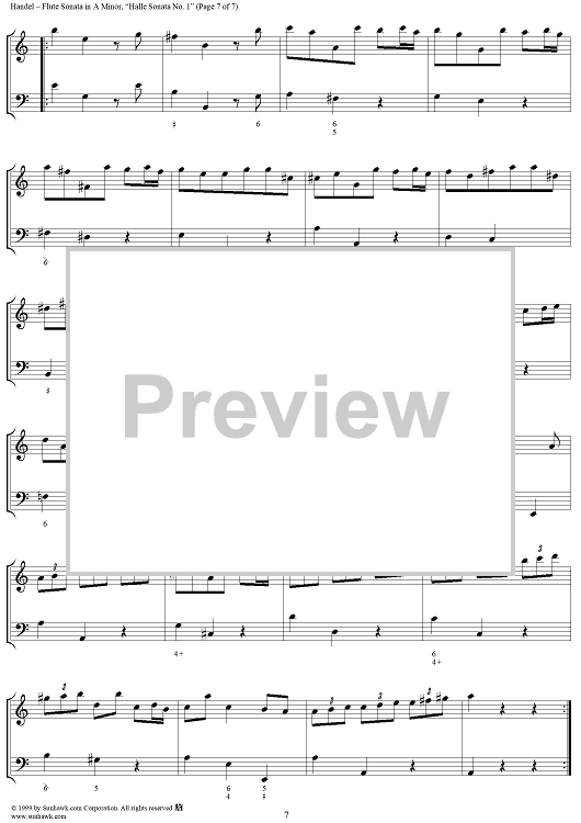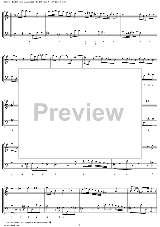 Digital Sheet Music for Flute Sonata no. 1 in A minor, HWV 374 ("Halle Sonata 1") by George Frideric Handel scored for Flute/Continuo; id:152623